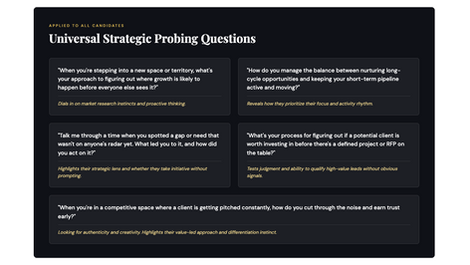 I developed a clear, easy to navigate assessment outlining each candidate’s ramp-up potential, key competencies, and areas to explore further during interviews.